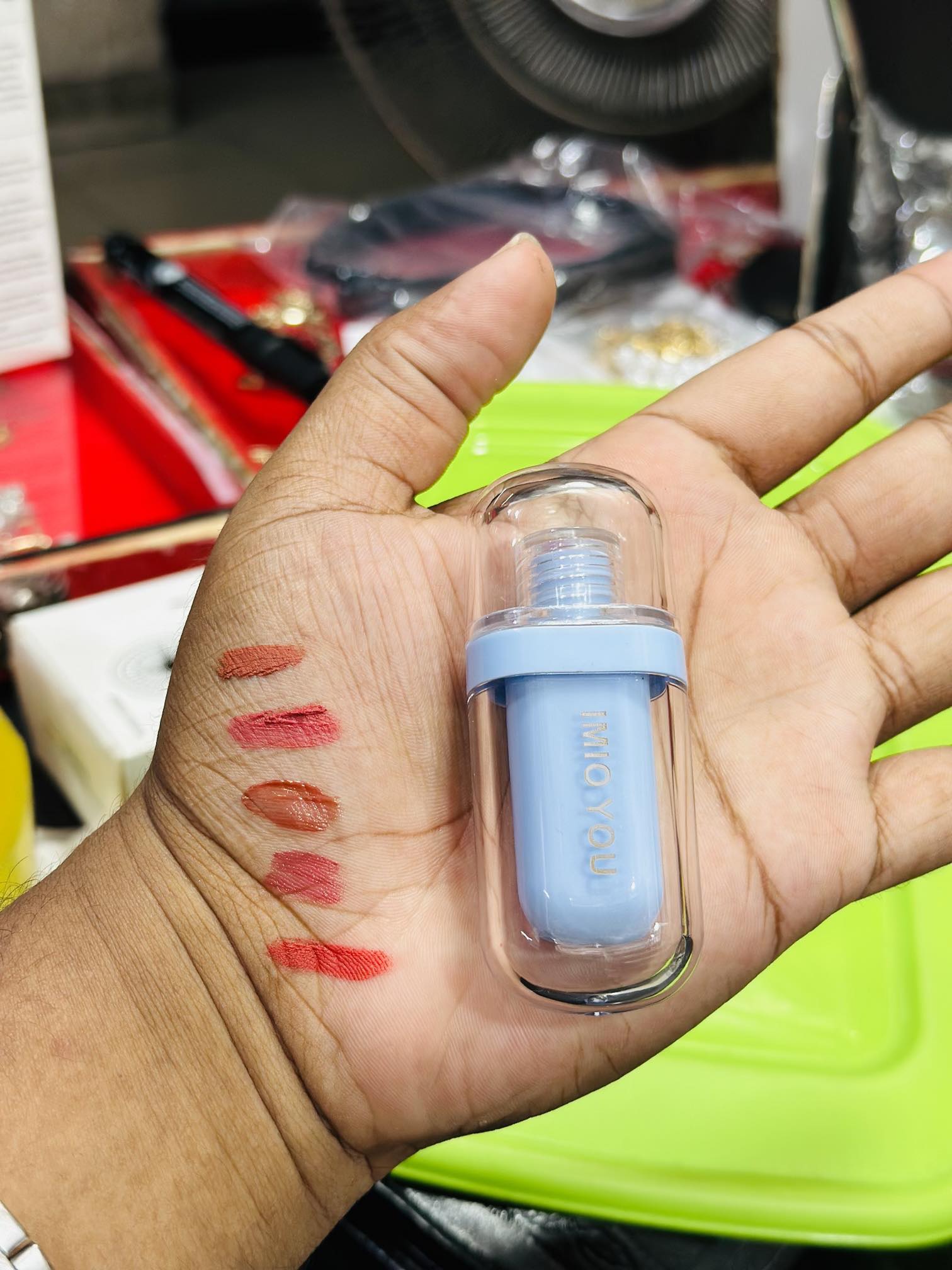 The IMIO YOU 6 Colors Mirror Jelly Lip Gloss isn’t just a lip gloss collection; it’s an invitation to reflect your vibrant lip beauty and effortlessly switch up your lip look. Whether you’re looking for vivid shades, on-the-go convenience, or simply want a high-shine finish, this lip gloss set empowers you to express your unique lip style with grace and confidence.